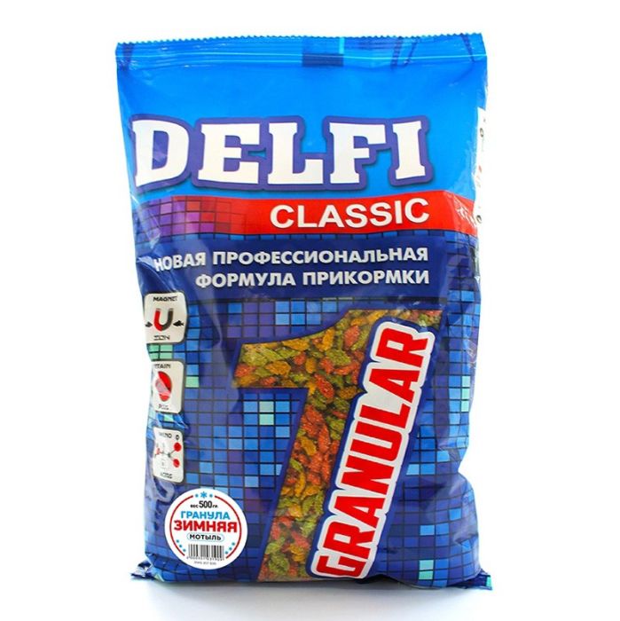 Прикормка DELFI Зимняя Мотыль гранулы 500гр.
