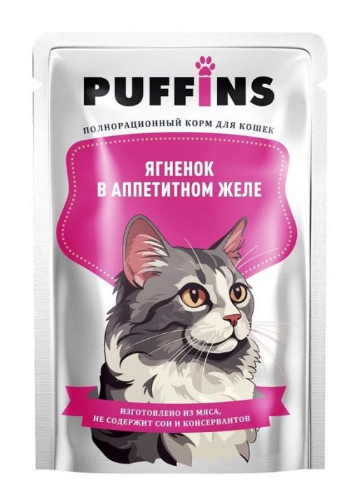 Паффинс консервы для кошек 75 гр желе Ягненок