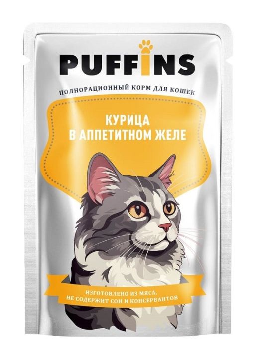 Паффинс консервы для кошек 75 гр желе Курица