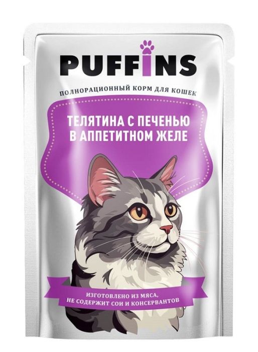 Паффинс консервы для кошек 75 гр желе Телятина с печенью