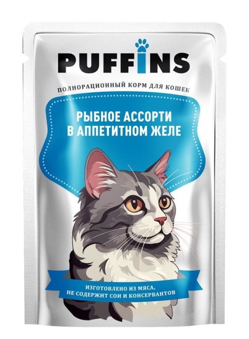 Паффинс консервы для кошек 100 гр желе рыбное ассорти (уп.24 шт) РАСПРОДАЖА