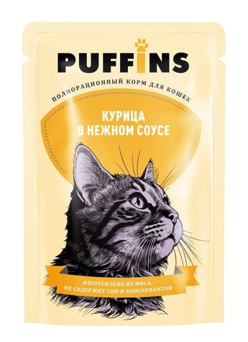 Паффинс консервы для кошек 75 гр соус Курица