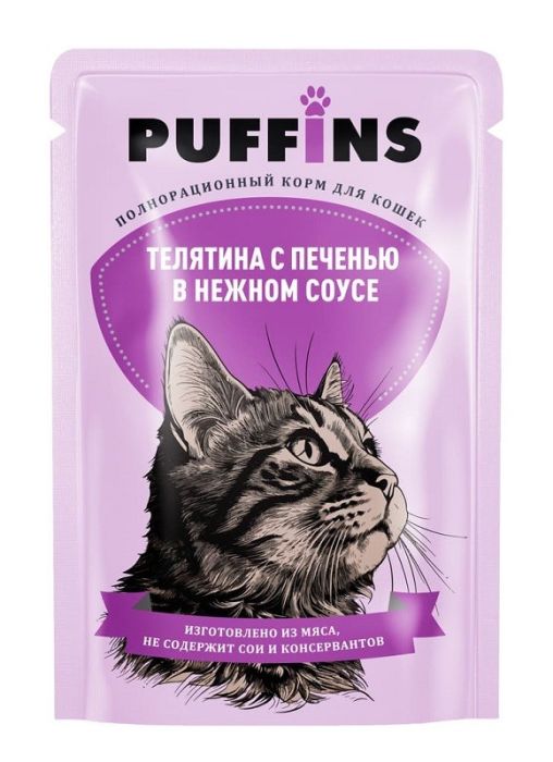 Паффинс консервы для кошек 75 гр соус Телятина с печенью