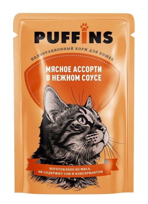 Паффинс консервы для кошек 75 гр соус мясное ассорти