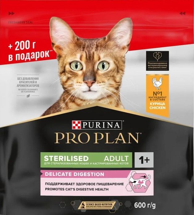 Проплан сухой для кошек 400 + 200гр для стерильных кошек с чувствительным пищеварением Курица