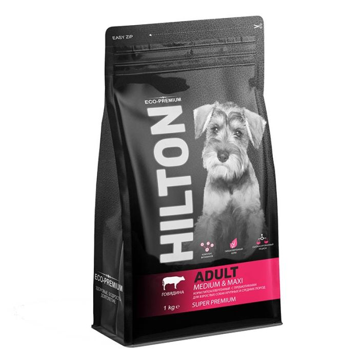 Хилтон ( Hilton ) полнорационный корм для собак средних и крупных пород с пребиотиками Говядина 1 кг