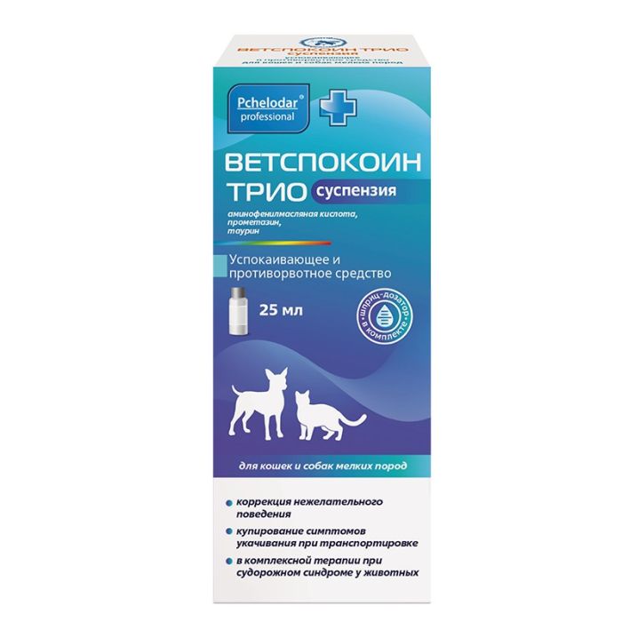 Ветспокоин Трио суспензия для кошек и собак мелких пород 25 мл