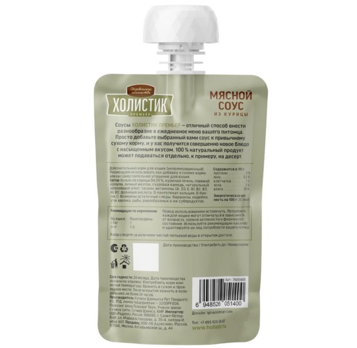 Деревенские лакомства для кошек Холистик Мясной соус из курицы 90 г