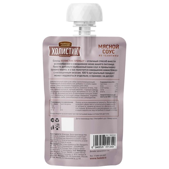 Деревенские лакомства для собак Холистик Мясной соус из телятины 90 г