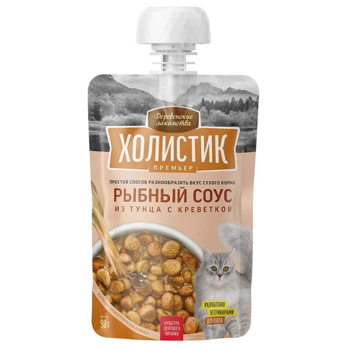 Деревенские лакомства для кошек Холистик Рыбный соус из тунца с креветкой 90 г