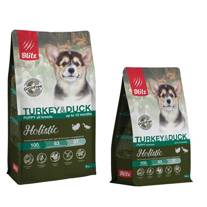 Блитц для щенков АКЦИЯ Индейка&Утка 8 кг беззерновой + Индейка&Утка 1,5 кг беззерновой