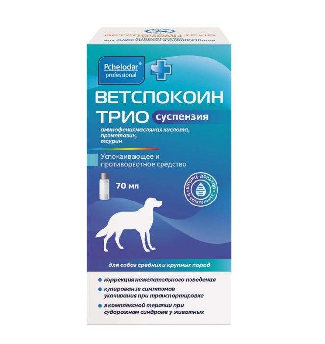 Ветспокоин Трио суспензия для собак средних и крупных пород 25 мл