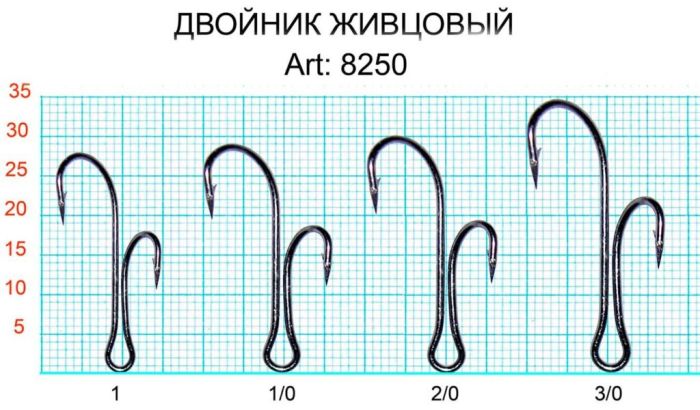 Крючок-двойник FS Живцовый разноуровневый непаяный №1/0 BN уп.8шт. (8250-1/0)