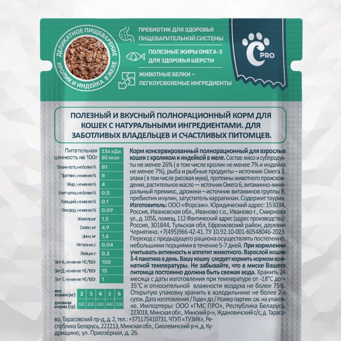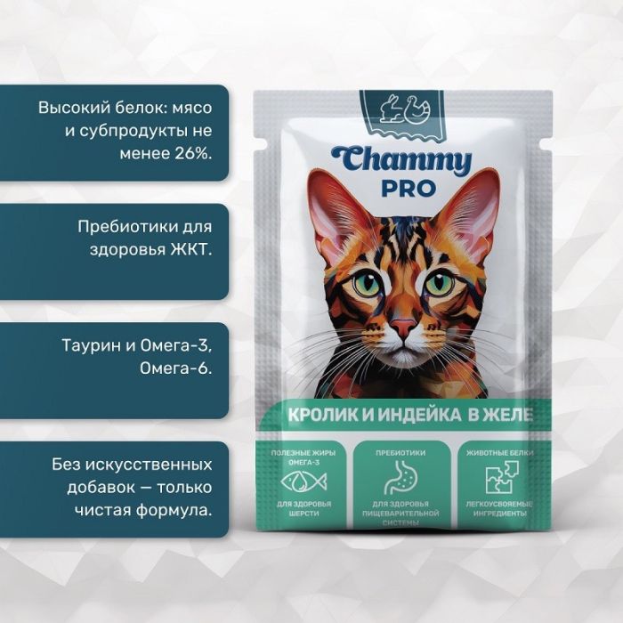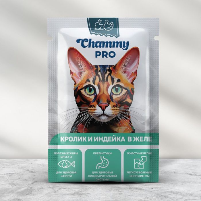 Chammy PRO консервы для кошек 85гр Кролик и индейка в желе