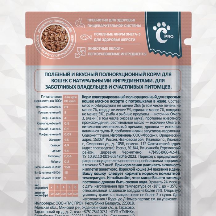 Chammy PRO консервы для кошек 85гр Мясное ассорти с потрошкми в желе