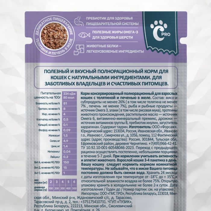 Chammy PRO консервы для кошек 85гр Телятина и печень в желе