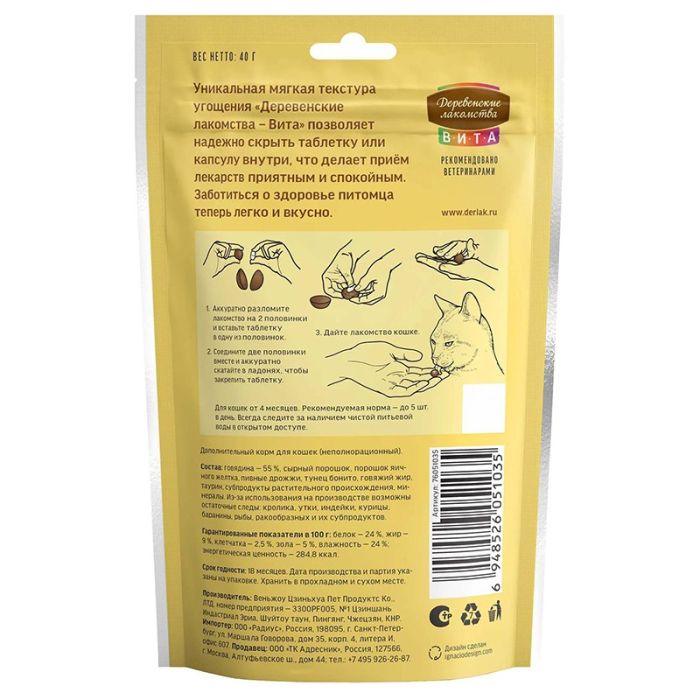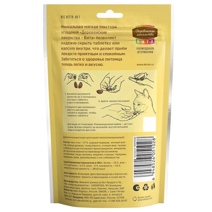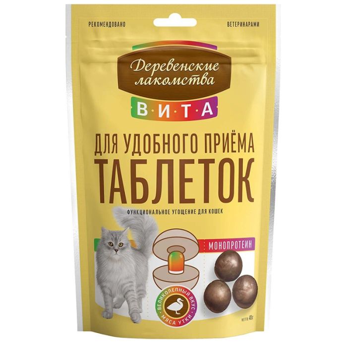 Лакомства Деревенские для кошек Вита для удобного приема таблеток Утка 40 г