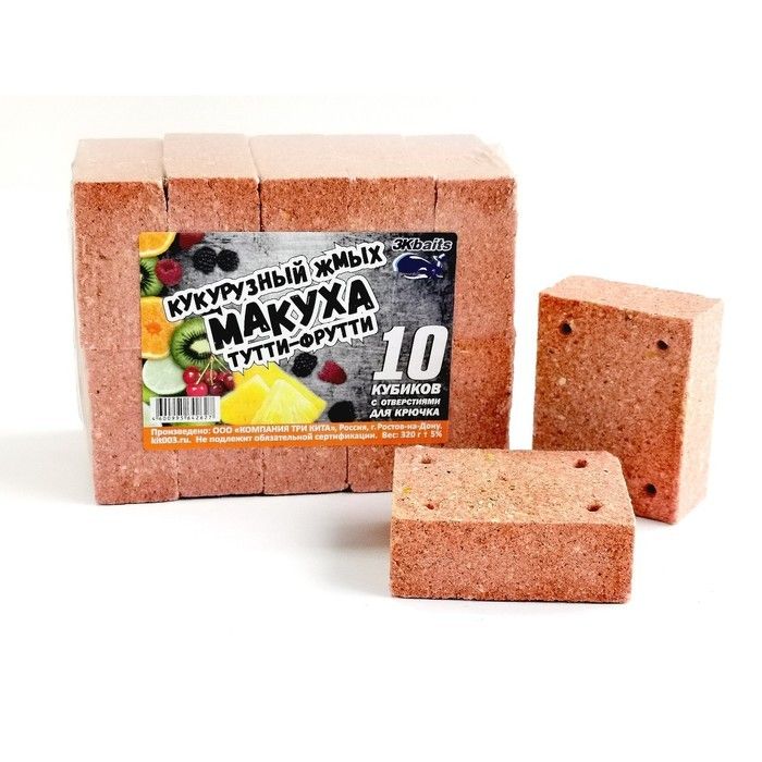 Макуха (кукуруз.жмых) с отверстием 320гр уп.10 кубиков Тутти-фрутти