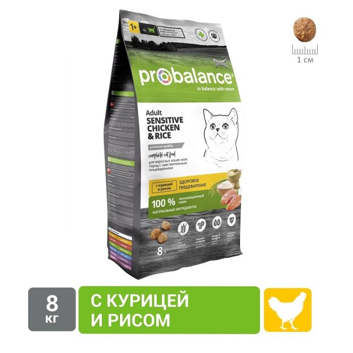 ПРОБаланс Sensitive д/кошек сух. 8кг чувств.пищеварение курица и рис