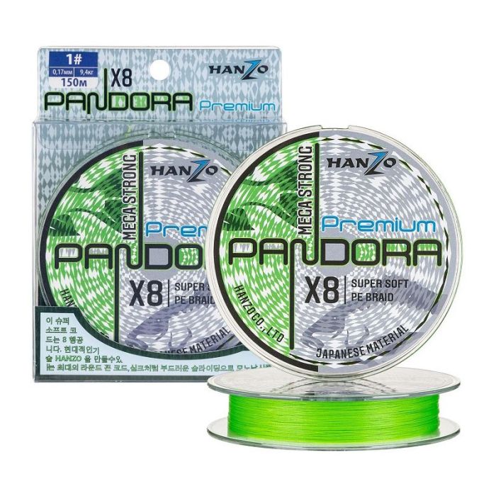 Шнур Hanzo Pandora Mega Strong x8 0,4 150м 0,10мм 6,4кг Green