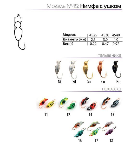 Мормышка SP-4540-17 Hимфа с ушк.4мм 0,92гр.с глазом 10шт