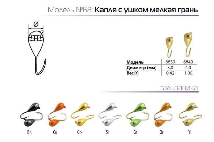 Мормышка SP-6830-CU Кап с ушк.мелкая грань 3мм 10шт