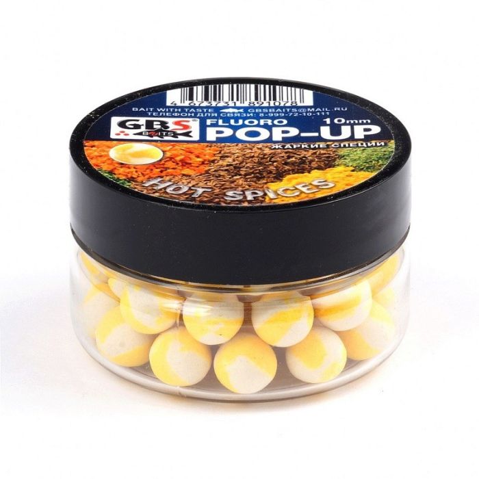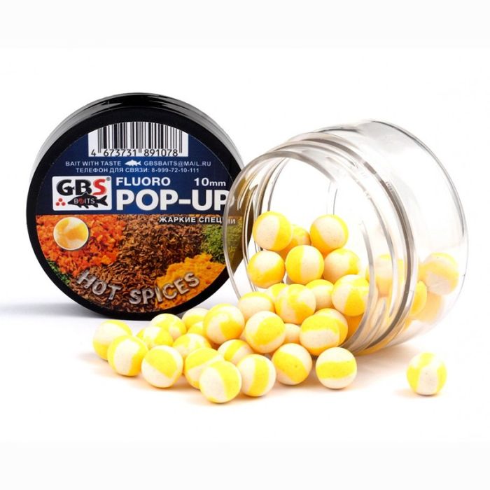 Бойлы GBS Baits Pop-up плавающие (банка) 10мм 55гр Hot Spices желтый/белый