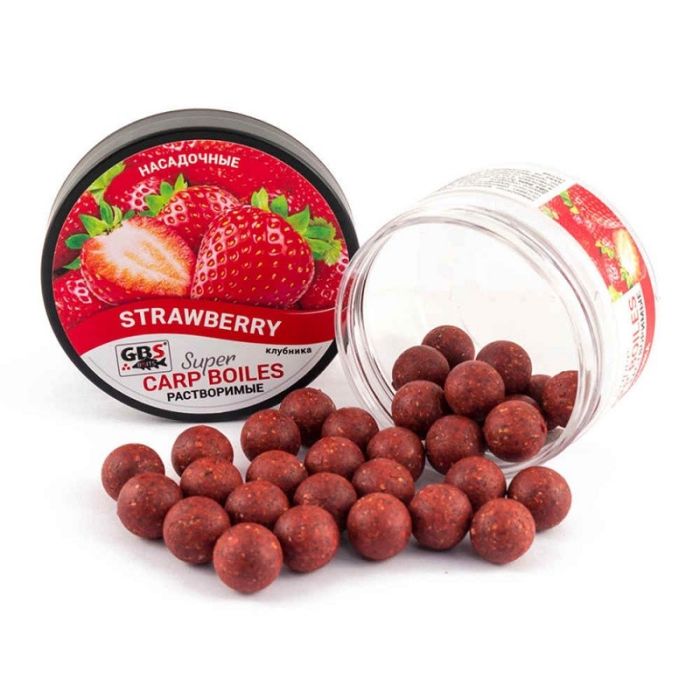 Бойлы GBS насадочные пылящие (банка) 16мм 100гр Клубника