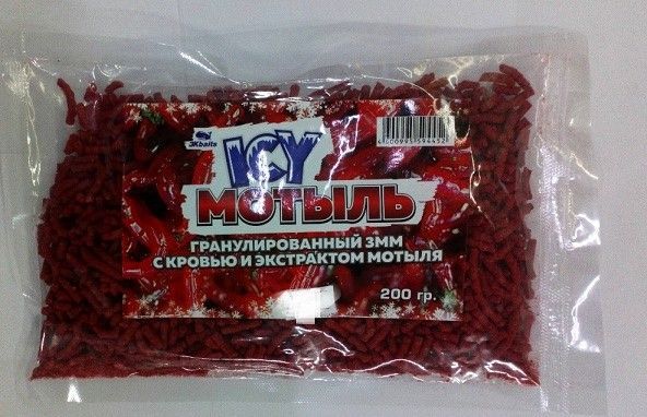 Мотыль гранулированный 3мм ICY с кровью и экстрактом мотыля, 200гр.