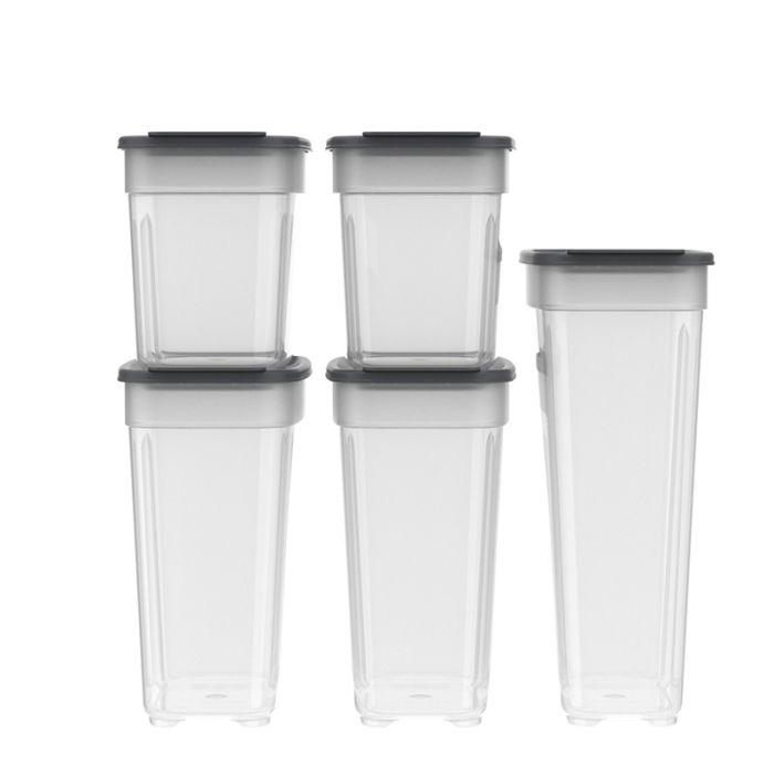 Контейнер для хранения сыпучих набор 5 штук (2*1 л 2*1,4л 1*1,8л) АП 1142 Дымчатый