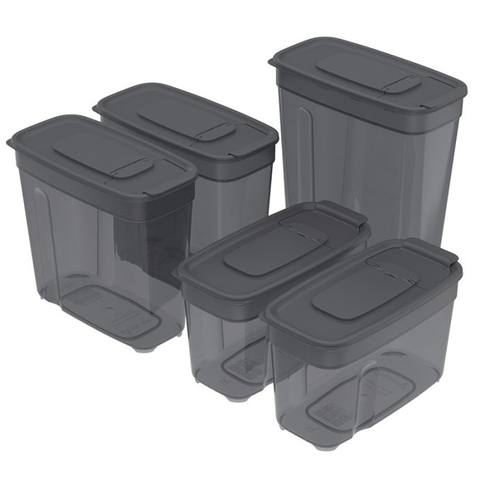 Контейнер для хранения сыпучих набор 5 штук (2*1 л 2*1,4л 1*1,8л) АП 546 Графит