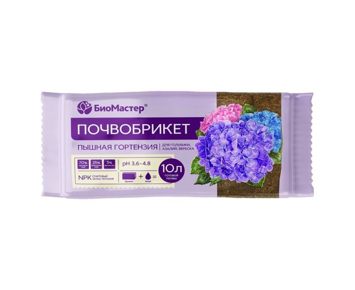 Торфобрикет БиоМастер Пышная гортензия 10 л