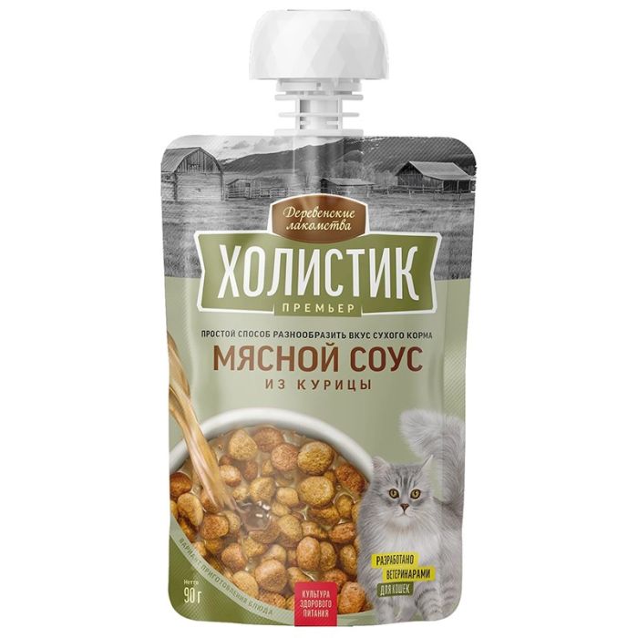 Деревенские лакомства для кошек Холистик Мясной соус из курицы 90 г