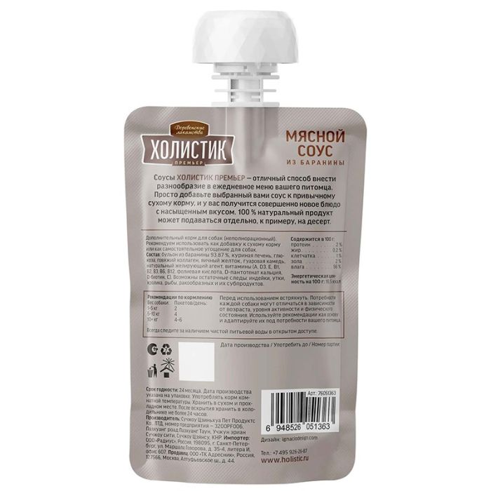 Деревенские лакомства для собак Холистик Мясной соус из баранины 90 г