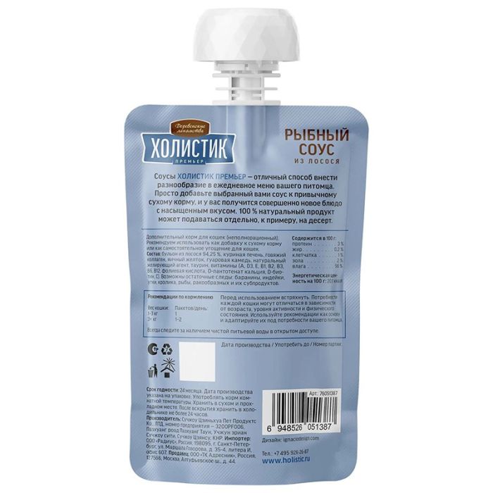 Деревенские лакомства для кошек Холистик Рыбный соус из лосося 90 г