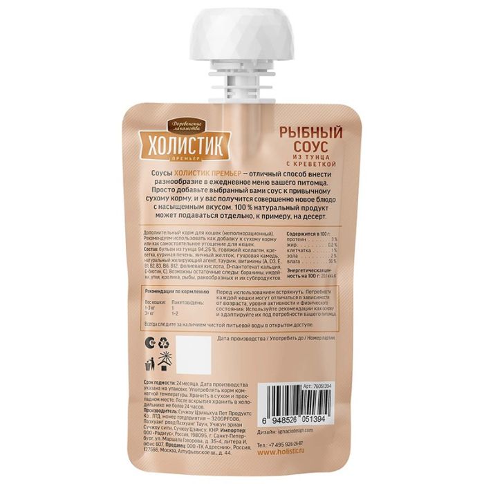 Деревенские лакомства для кошек Холистик Рыбный соус из тунца с креветкой 90 г