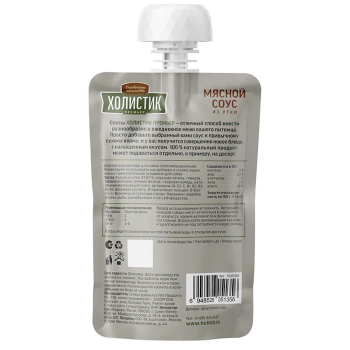 Деревенские лакомства для собак Холистик Мясной соус из утки 90 г
