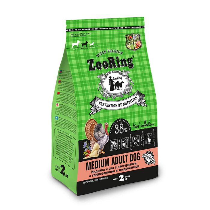ЗооРинг для собак медиум Индейка и рис и пастернак с глюкозамином и хондроитином 2 кг