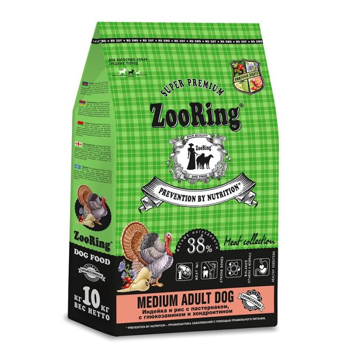 ЗооРинг для собак медиум Индейка и рис и пастернак с глюкозамином и хондроитином 10 кг