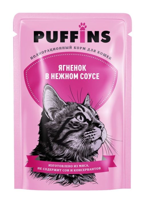 Паффинс консервы для кошек 75 гр соус Ягненок
