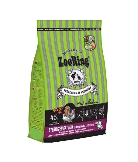 ЗооРинг сухой для стерилизованных кошек Индейка, Утка и Брусника 20 кг