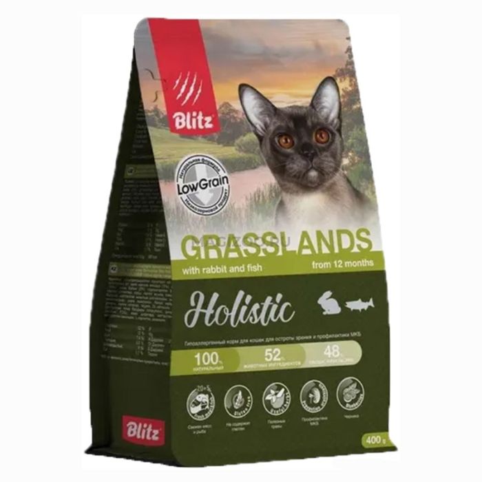 Блитц ХОЛИСТИК Полнорационный сухой корм для кошек со свежей индейкой, кроликом и рыбой 0,4 кг