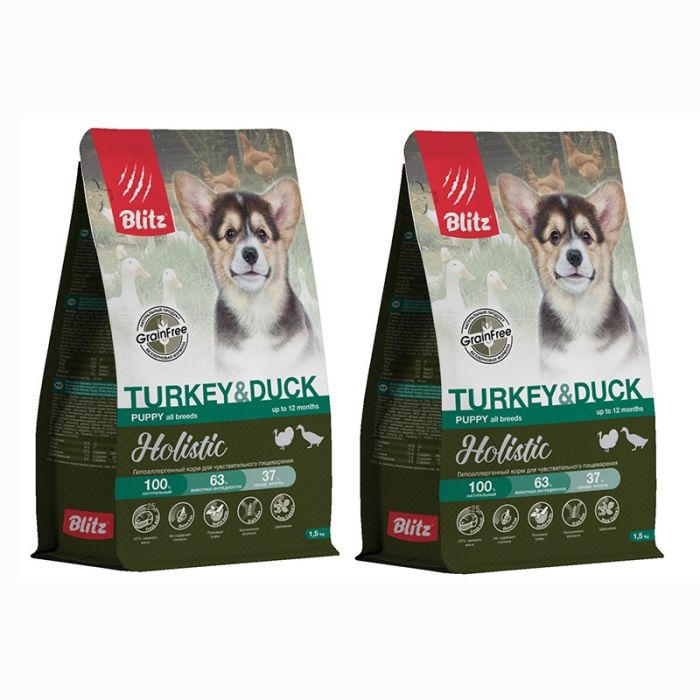 Блитц для щенков Индейка&Утка 1,5кг беззерновой АКЦИЯ 1 + 1