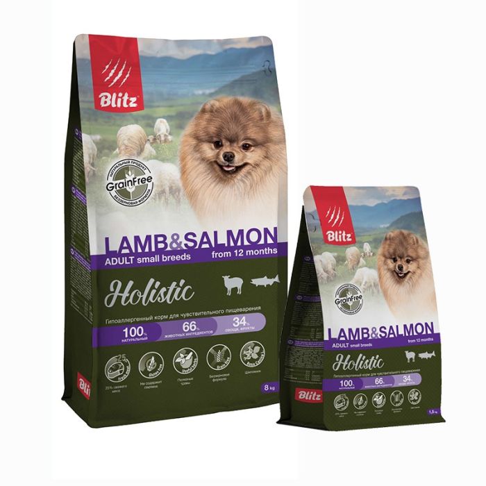 Блитц для взрослых собак мелких пород 8 кг ХОЛИСТИК ягненок и лосось + 1,5 кг ягненок и лосось