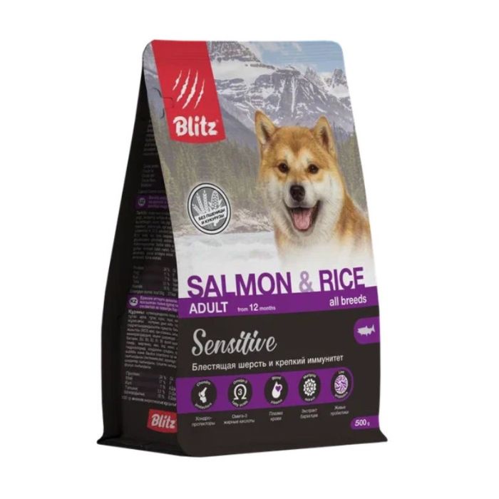 Блитц для взрослых собак с чувствительным пищеварением 15 кг лосось\рис