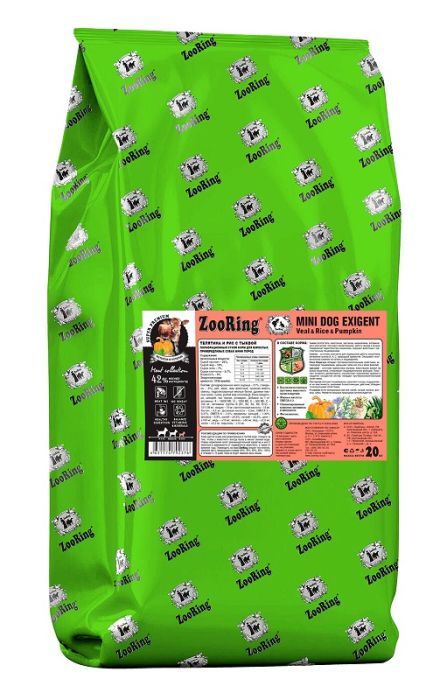 ЗооРинг для собак мини телятина, рис с тыквой 20 кг