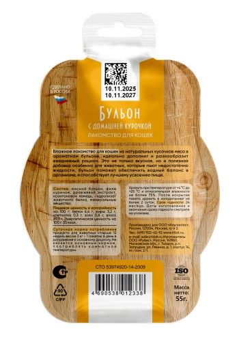 Лакомство для кошек Бульон с домашней курочкой 55 г 012338