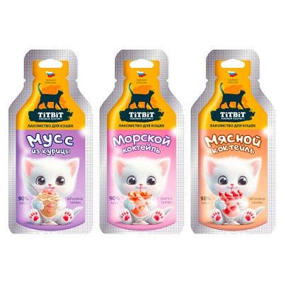 Лакомство для кошек Вкусный микс 3 вида мусс и коктели 45 г 028308