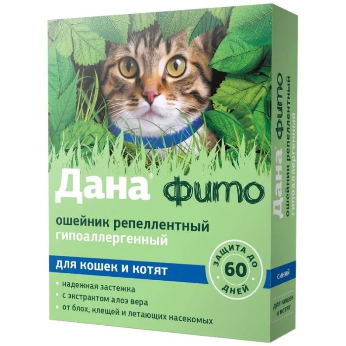 Ошейник от блох ДАНА фито для кошек и котят 35 см синий
