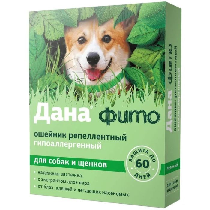 Ошейник от блох ДАНА фито для собак и щенков зеленый 65 см
